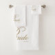 Serviette de bain de mariée. Élégant script or Bride sur un arrière - plan blanc avec date mariage dans le texte de bloc classique en bas à droite. La date du mariage peut être supprimée en effaçant le champ de texte, ou modifiée pour personnaliser avec le nom de la mariée ou pour ajouter des initiales de mariée et de mariée.