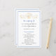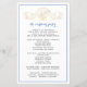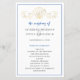 This elegant coastal design features a stylish gold seashell and waves design with a blue border. Personalize with your wedding ceremony details. Perfect for beach, summer, or nautical theme weddings. Design©Rosalind Moore, Cherry Lane Designs.