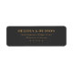 These return address labels feature a sophisticated and elegant design with a deep charcoal grey background and metallic gold text. The layout is clean and minimalistic, utilizing a serif font that adds a touch of formality and timelessness to the overall look. Perfect for weddings or formal events, the balanced composition and luxurious colour palette convey an air of understated elegance, making these labels ideal for those seeking a classic and refined aesthetic.