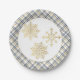 Elegant Gold Snowflake and Plaid Frame Paper Plate