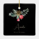 Bring contemporary style to your Christmas tree with this square ornament in a modern black variant. Featuring hand-painted style pine greenery, golden sprigs, and red ornaments on a snowy backdrop, it blends Scandinavian simplicity with cozy holiday charm. Personalize for a unique keepsake or thoughtful gift.