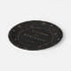 This is a sophisticated style image featuring an elegant black background adorned with intricate gold star patterns. At the centre, a golden circle showcases the names "Lauren and Benjamin" in classic script, surrounded by the wedding date "May 23, 2026." The design exudes luxury and timeless charm, making it perfect for setting a refined tone for a special celebration. It inspires feelings of grandeur and anticipation.