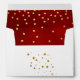 Festive white holiday invitation / Christmas card envelope, with the inside is done in a rich red, with gold tone stars. Shiny gold tone stars decorate the front and back, of the envelope. Personalize the red return address, on the back flap, of the envelope, for your holiday cards. Matching Christmas cards and products are available.