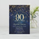 Elegant Gold Stars Navy Blue 90th Birthday Party Invitation