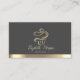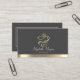 Professional fashion stylist business card featuring a beautiful gold glitter cupcake and an elegant gold stripe on grey backgrounds. Add your name and contact details to make a lasting first impression.