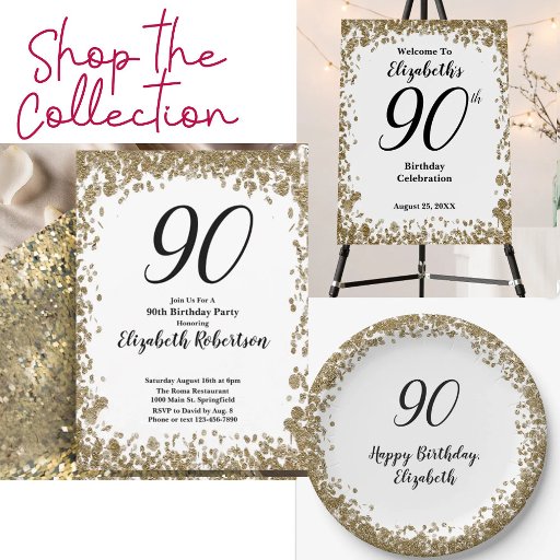 90th Birthday Gold Sequins Birthday Conçu par Kara Buntin