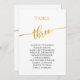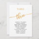 These elegant gold table number 3 seating chart cards are perfect for a simple wedding. The neutral design features a minimalist card decorated with romantic and whimsical faux gold foil typography. The card prints on the front and back (double-sided).