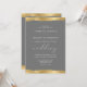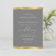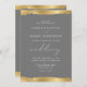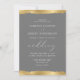 This elegant wedding invitation features a gold faux foil torn edge design at the top and bottom borders on a stylish grey background. The word "wedding" appears in calligraphic script. Customize the white text with the names of the bride and groom and the wedding details. The gold edge design is repeated on the reverse.