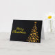 Make a bold statement with this stylish "Merry Christmas" card featuring a golden Christmas tree on a sleek black background, perfect for a sophisticated holiday message.