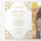 This elegant gold wedding program is tri-fold and features 6 pages to fit all of your wedding ceremony info. The back middle panel has your photo for a personalized touch.