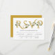 Elegant gold typography and white roses RSVP card with meal choice. This elegant wedding design features the "RSVP" in a decorative relief font in goldwith white roses. The back is of solid gold colour.