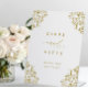 Display this standing elegant gold wedding cards and gifts sign on your gift table. This elegant wedding gift table sign features a vintage design at the corners and is perfect for a classy and sophisticated gold wedding. View more matching elegant gold wedding products below.