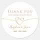 Add a touch of elegance to your wedding favours with this classic round thank you sticker. Featuring a minimalist gold script with a heart-shaped rope design and personalized names, it’s the perfect way to thank your guests in style. Ideal for cookie bags, boxes, or custom wedding favours.