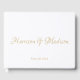 Elegant white and faux gold Script Custom names dates Text or Monogram chic Wedding Guest Book.