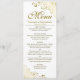 This beautiful menu features a beautiful design with gold text on a classic white background and golden faux foil curls and swirls in the corners. There is fancy script lettering for the title and space for the names of the couple and wedding date. Designed on Zazzle's standard greeting card product, this menu is available for digital download, making it the perfect choice for last minute ordering! Wonderful way to add some style and class to your wedding reception!