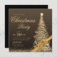 Elegant Winter Xmas Dinner Party Invitation template with Gold Christmas tree with bow and lights. Impress your friends with this sophisticated and modern invitation design.