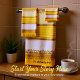 Personalize romantic modern elegant gold with yellow and white Stripe .Customize Your black background Colour and monogram bath towels