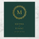 Elegant Gold Wreath Emerald Green Monogram Wine Label