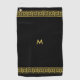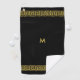 Elegant golden Greek pattern and monogram on black Bath Towel Set.