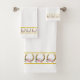 Elegant golden horseshoes decorated with flowers on white Bath Towel Set. Simple stylish design. Horseshoes are believed to bring good luck and protection.