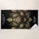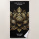 Create an oasis of peace for yourself, wherever you go, with this beach towel, which features an AI-generated design of a golden lotus flower with the (customizable) benediction, "the light in me honours the light in you."