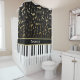 An elegant stylish design for the piano player or musician featuring golden coloured musical notes and a piano keyboard on a black background with gold and black strip to add the name of your choice to create a unique personalised music themed gift for any occasion