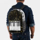 An elegant stylish design for the piano player or musician featuring golden coloured musical notes and a piano keyboard on a black background with gold and black strip to add the name of your choice to create a unique personalised music themed gift for any occasion