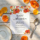 Elegant Summer Golden Poppy Baby Shower Invitations. Delicate watercolor poppies frame the edges of this summery baby shower invitation. Easily customize to change the year, names, fonts, etc. Please contact us at cedarandstring@gmail.com if you need assistance with the design or matching products.