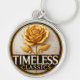 Elegant Golden Rose With Timeless Classics Text Keychain
