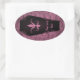 An elegant black gothic coffin with a grungy purple damask background pattern on cute oval stickers for your bottles and jars. Click "customize it" to change or move font.
