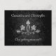 Gorgeous save the date post card in a grungy black with a fancy leaf design on it in silvery grey. All wording is customizable. This matches items in my wedding section.