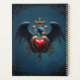 Elegant Gothic heart with fantasy bird. The heart is artfully decorated with filigree flourishes and floral patterns that give the design a noble and sophisticated touch. The fantasy bird that surrounds the heart is in cool blue tones and exudes a mysterious aura. Its red eyes glow like glowing coals in the dark, giving it an eerie charm. The combination of the elegant gothic style of the heart and the mysterious presence of the blue fantasy bird creates a fascinating and unique design that captivates the viewers.