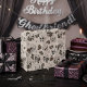 Hand-drawn in black ink, this gift bag features a beautiful pattern of skulls, roses and spiderwebs in cream and blush tones, all against an elegant ivory background.