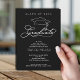 A graduation cap and the word "graduate" in an elegant white script PLUS the name and year of your graduate and your information on these black graduation party invitations. SEE ENTIRE COLLECTION of pre-done colours, paper plates, napkins, grad cap tops and more in our store.