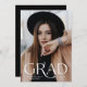 Modern graduation announcement featuring the graduate's full-bleed vertical photo on the front with "Grad" displayed in an elegant white text overlay. Personalize the front of the simple graduation announcement with the graduate's name and graduation year. The announcement reverses to display an additional photo with your personal message shown below. The 2 photo graduation announcement is perfect for both high school and college graduates.