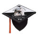 Design your very own motarboard for a graduation ceremony - This black and white design features an arch photograph of th graduate, a black graduation cap, elegant script font, name of school and class year. Congratulations to the graduate! All text and colours can be customized using the template provided.