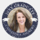 Elegant Graduate Photo Navy Blue Cap Confetti Classic Round Sticker