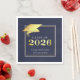 Elegant personalized CLASS OF 2026 graduation party paper napkins with CONGRATULATIONS and your graduate's name accented with an elegant faux metallic gold foil graduation cap or mortarboard and year in your choice of colours (shown in navy blue and gold) to coordinate with your school colour or party theme colour. OPTIONS: The sample is shown in the 6.5x6.5" luncheon napkin size--other sizes are available on the ordering page. ASSISTANCE: For help with design modification/personalization, colour change, transferring the design to another product or you would like coordinating items, contact the designer BEFORE ORDERING via Zazzle Chat or makeitaboutyoustore@gmail.com.