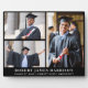 Elegant graduation keepsake black photo plaque to celebrate your graduate featuring a three picture collage and his or her name, class year and school in elegant modern white typography.