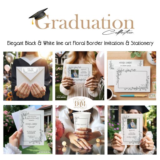Elegant Graduation Black and white Floral BorderDesigned by Houria Sabrine