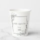 Elegant Graduation Black and white Floral Border Paper Cups. This personalized custom Paper Cups featuring a delicate stylish black and white line art drawing illustrating a stylish simple floral border decorated with graduate cap, and trendy hand lettered script typography.