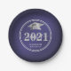 Elegant Graduation Cap Class Year Navy Blue Silver Paper Plate