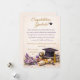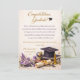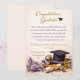 A refined graduation card design featuring a soft golden background, a graduation cap with diploma scrolls, a decorative globe, and purple floral elements. The layout blends inspiration and celebration, symbolizing achievement, possibility, and a bright future ahead—perfect for honoring a graduate’s milestone with warmth and encouragement.