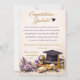 Elegant Graduation Card with Globe, Cap, Diploma, and Purple Floral Accents