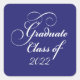 Elegant white and blue graduation sticker to attach to graduation announcements,graduation party imitations,save the date and other graduation paper correspondence. Perfect for the graduating Class of 2022. Elegant and classic script style font.