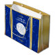Make graduation an unforgettable celebration with this commemorative gift bag! Elegant white serif and script lettering on a royal blue marble background bordered by gold foil and white circles add a memorable touch for this special occasion and milestone. Personalize with learning institution's name, initial (or logo), and graduating year. Reverse shows identical design.