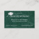 Emerald green marbled background with silver cap and border, elegant script lettering. Classic academic style design is perfect for recent grads in making professional and social introductions. Personalize with your name, contact info, and school.