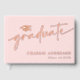 Light pink or custom colour graduation guest book featuring the text "graduate" in an elegant script font with a graduate cap above. The graduate's name and year are printed in the bottom right corner.