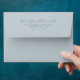 This elegant envelope features a minimalist design with a clean, white background and dark gray text. The layout is centered, showcasing an elegant cursive script for names followed by a classic serif font for the address, creating a sophisticated and formal appearance. With ample negative space, the design emphasizes clarity and readability, making it perfect for official or ceremonial occasions. Its understated style blends traditional elegance with contemporary minimalism, ideal for those seeking a refined and functional envelope.
