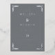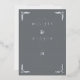 This elegant wedding invitation features a sophisticated rectangular layout with a muted gray background, framed by intricate floral motifs at each corner. The design employs a clean serif font for the customizable text, arranged in a balanced, hierarchical manner to highlight the names and event details. With its timeless color palette of grays and whites, this invitation exudes formality and refinement, perfect for celebrating a significant life moment like a wedding.